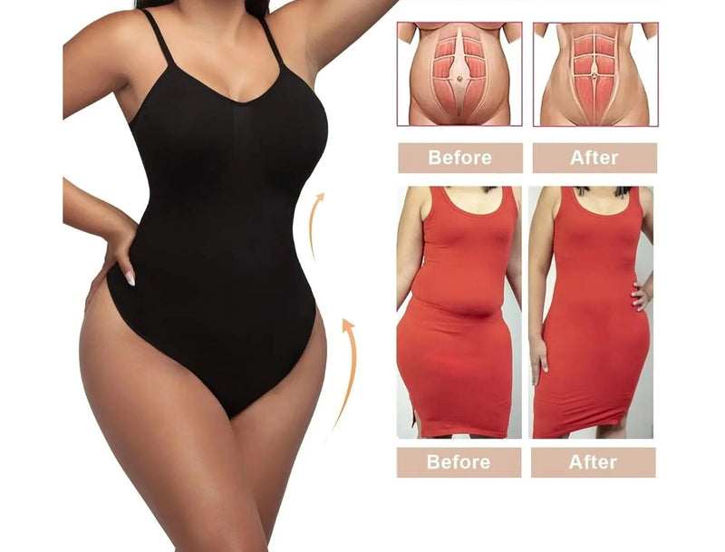 Body gainant sans couture qui affine la taille, galbe les fessiers et lisse la silhouette. Invisible sous vos vêtements. Confort optimal toute la journée. Laver a l'eau froide et suspendre pour faire sécher.
